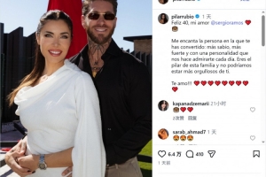 体育资讯4月1日讯 拉莫斯迎来40岁生日,妻子皮拉尔·卢比奥社媒为其庆生。