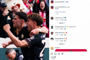 比朔夫也在赛后通过社媒晒出自己和队友的庆祝合照,并配文:“完美⚽️⚽️”