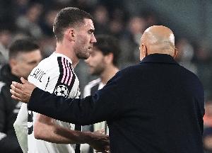 该记者透露:“这位塞尔维亚前锋几周前刚刚复出,但在尤文图斯对阵卡利亚里的比赛下半场热身时,他遭遇了轻微的肌肉拉伤。弗拉霍维奇立即返回更衣室,斯帕莱蒂教练组的一名工作人员陪同他返回,并给他拿了一个冰袋。”
