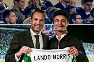 欧冠1/4决赛首回合,葡体主场0-1不敌阿森纳,F1世界冠军、迈凯伦车手诺里斯现场观战,与他一同观战的还有前女友科尔塞罗,诺里斯同时获赠一件葡体4号球衣。