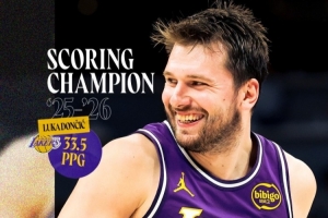 据湖人官方统计,在过去的三个赛季中,东契奇第二次荣获得分王。他是NBA历史上第20位多次获得得分王的球员。他也是湖人队史第五位获此殊荣的球员,上一位是科比(2006-07赛季)。