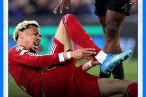 这位前锋在周二安菲尔德对阵巴黎的欧冠比赛上半场因场地打滑摔倒,随后被迫离场。