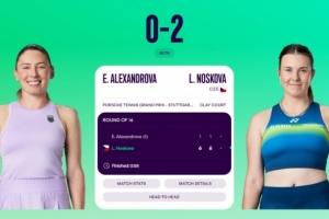 体育资讯4月16日讯 WTA500斯图加特站第二轮,诺斯科娃2-0轻取亚历山德洛娃。