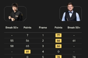 全场比赛,雷佩凡虽然轰出两杆50+,但他上来就以0-3落后,虽然在第四局扳回一局,但随后瑞恩·戴连下两局带走胜利。