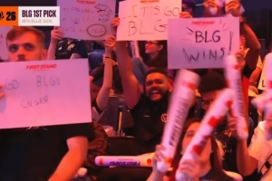 体育资讯3月16日讯 先锋赛首日BLG对阵BFX,巴西主场许多观众举着BLG应援牌为其加油。